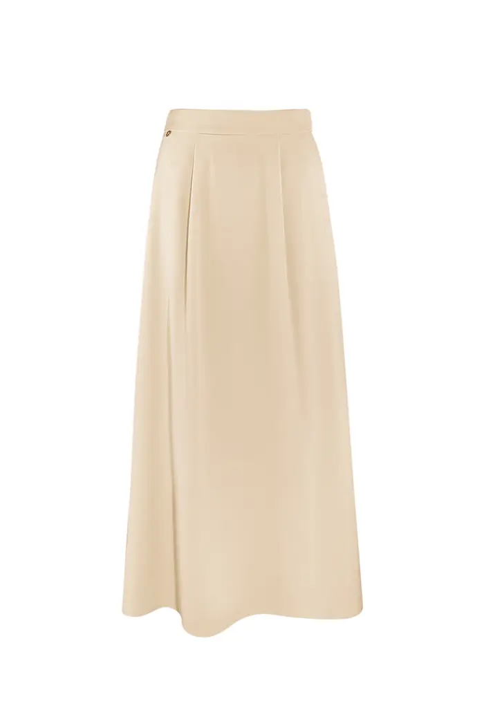 Deze geweldige rok is gemaakt van 100% polyester. Deze geweldige beige kleur maakt het een perfecte rok voor in de zomer.